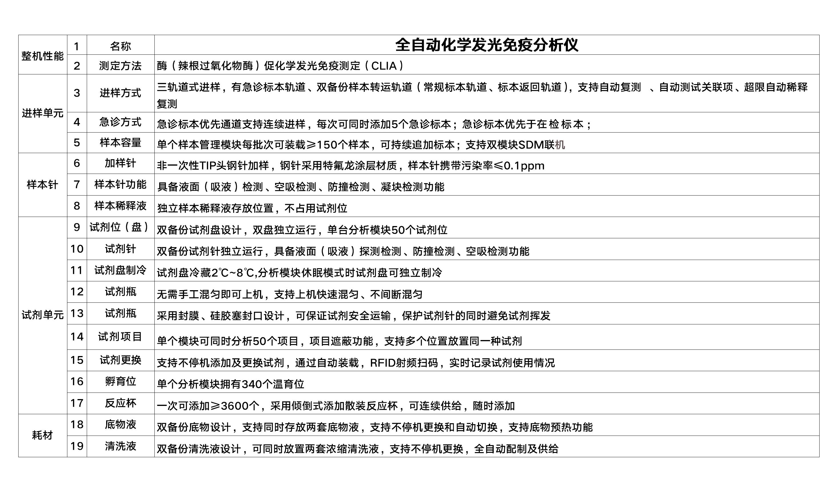 便捷体验 试剂、反应杯、底物、清洗液支持不停机更换;单个分析模块50个试剂位,支持RFID射频扫码,实时记录试剂消耗;浓缩清洗液实时自动配制并供给,储运方便、更换便捷;多系统配合,仪器可实现六小时离机不间断运行。